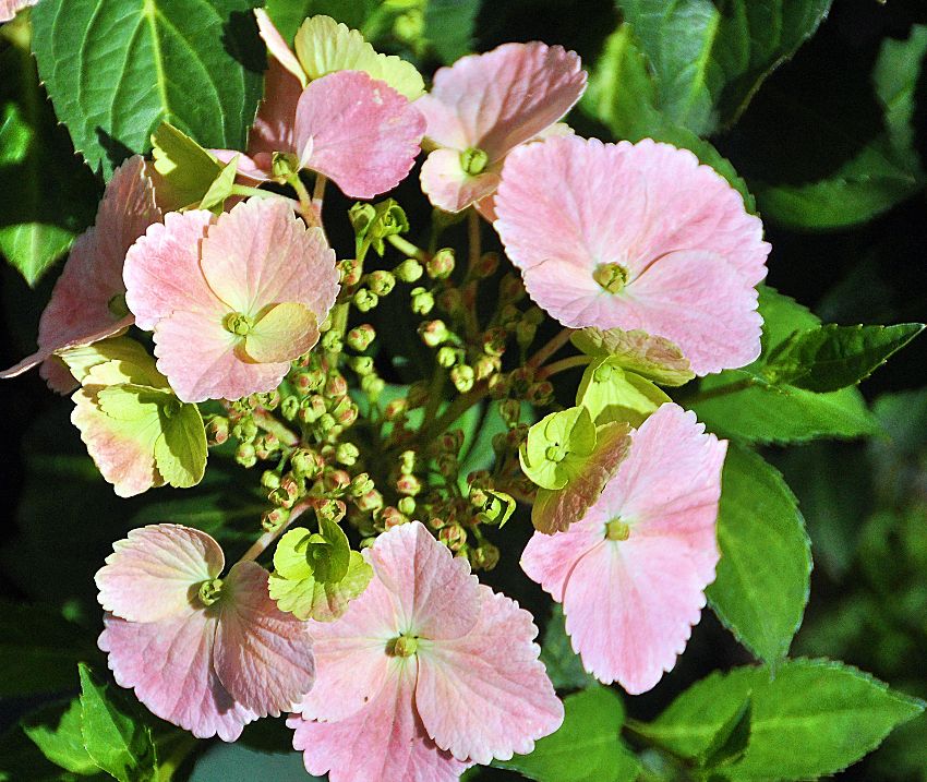 Dalla macrophylla ha ereditato i grossi fiori tipo lacecaps.